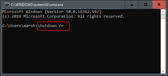 ၵၢၼ်ဢၼ်ၼႆႉတႄႉ မၼ်းပဵၼ် လွင်ႈ တႄႇၶိုၼ်း ၶွမ်းၸဝ်ႈၵဝ်ႇ ဢၼ်ၶႂ်ႈငၢႆးမိူၼ်ၵၼ်တင်း လွင်ႈဢိုတ်းၶွမ်းၸဝ်ႈၵဝ်ႇၼၼ်ႉယူႇ။ မၼ်းတေလႆႈၸႂ်ႉ Command ပိူင်ႈပႅၵ်ႇဢိတ်းဢွတ်း ၵႃႈတီႈၼႂ်း Command Prompt ၼၼ်ႉယဝ်ႉ။ ၼဵၵ်းပၼ် Windows + R သေ ပိုတ်ႇ ဝိၼ်းတူဝ်း Run သေ ပေႃႉသႂ်ႇ "cmd" ယဝ်ႉ ၼဵၵ်းပၼ် ၼဵၼ် "OK" သေ ပိုတ်ႇ Command Prompt လႄႈ။ တီႈၼႂ်း Command Prompt ၼၼ်ႉ ပေႃႉသႂ်ႇပၼ် shutdown /r ၼႆလႄႈ။