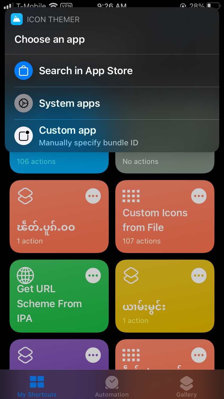 - ၸႂ်ႉ Shortcut App သေ လႅၵ်ႈ။ တေလႆႈဢူၼ်းသႂ်ႇ App "Icon Themer" တႃႇ Shortcut App ထႅင်ႈ။