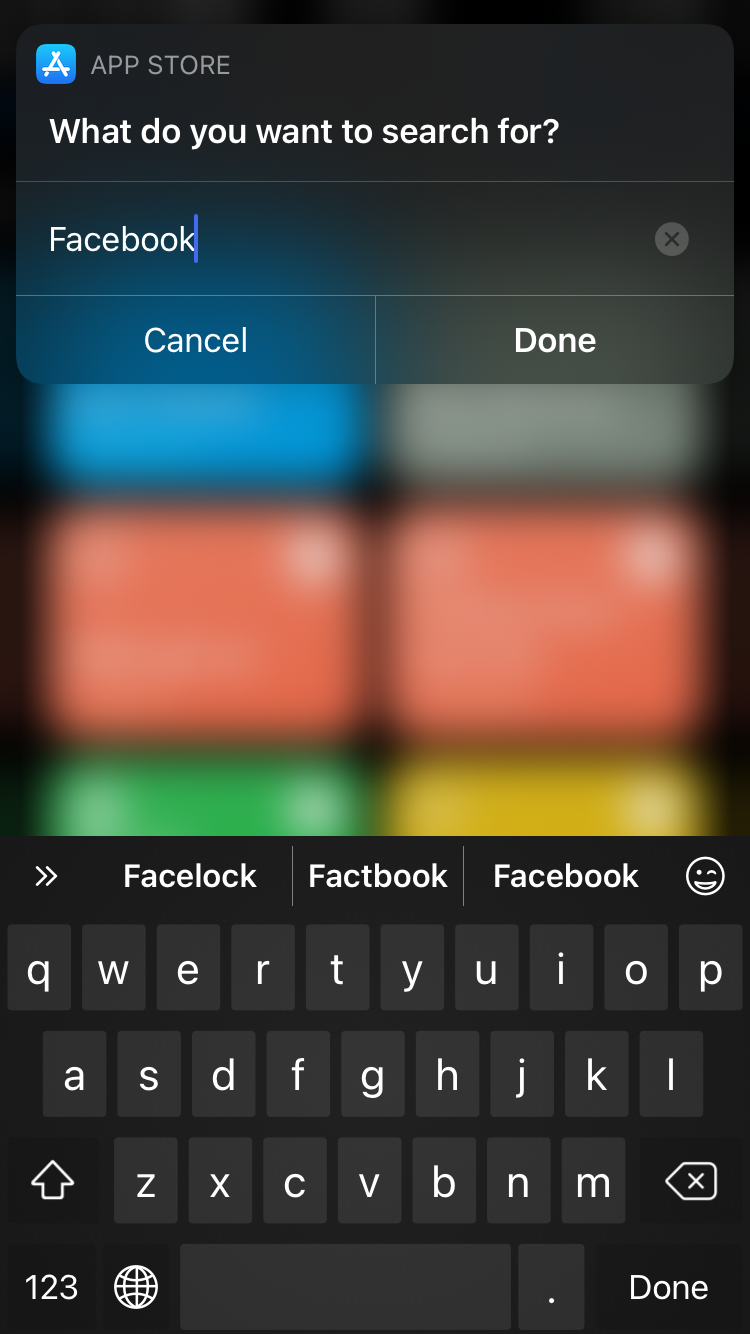 တေၸႂ်ႉလိူၵ်ႈ ဢွၼ်တၢင်းသုတ်း "Search in App Store" ႁဝ်းတေႁဵတ်းၸၢမ်းတူၺ်း Facebook App လႄႈ တေႁႃ Facebook /လိူၵ်ႈဢဝ်ဢၼ်တင်းၼိူဝ်သူတ်း