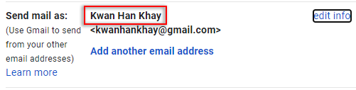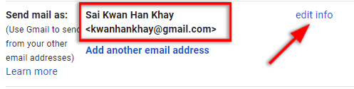 တီႈၼႂ်းၵၼ် “Send Mail As” ၼၼ်ႉ ၸဝ်ႈၵဝ်ႇ တေလႆႈႁၼ် ႁဵင်းလိၵ်ႈဢီးမေးလ်ၸဝ်ႈၵဝ်ႇလႄႈ ၸိုဝ်ႈဢွၵ်ႇၼႄၸဝ်ႈၵဝ်ႇ ဢၼ်ၵိုၵ်းဝႆႉတင်း ႁဵင်းလိၵ်ႈၼၼ်ႉယဝ်ႉ။ ၼဵၵ်းတီႈ ၼဵၼ် “Edit Info” ၼၼ်ႉသေၵေႃႈ လႅၵ်ႈလၢႆႈ ၸိုဝ်ႈဢွၵ်ႇၼႄၸဝ်ႈၵဝ်ႇလႆႈယူႇ။