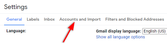 ယၢမ်းလဵဝ် ၸဝ်ႈၵဝ်ႇ တေမီးတီႈၼႂ်း ထႅပ်ႉ “General” တီႈ သဵၼ်ႈၵၢၼ် Settings ႁင်း Gmail ၼၼ်ႉယူႇ။ ၼဵၵ်းတီႈ ထႅပ်ႉ “Accounts and Import” ၼၼ်ႉလႄႈ။