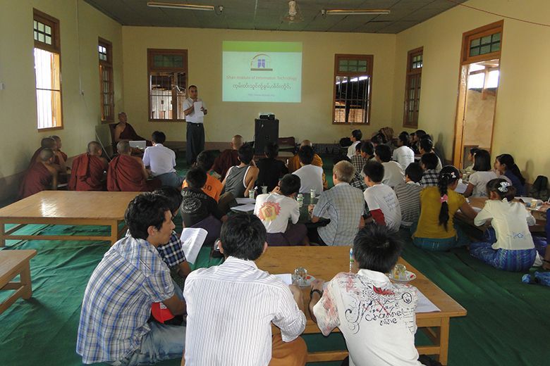 မိူဝ်ႈ ပီ 2015 လိူၼ်ၸၼ်ႇဝႃႇရီႇ 28 ဝၼ်းၼၼ်ႉ ဢၼ်ပဵၼ် ၽူႈၼၢမ်းႁူဝ် SIIT ၸဝ်ႈသြႃႇသုၶမ်းႁဝ်းၶႃႈ လႆႈဢွၼ်ႁူဝ်ၼၢမ်းၼႃႈသေ ၸတ်းႁဵတ်း ပၢင်သိုပ်ႇမိုတ်ႈသပ်းလႅင်း လွင်ႈ Shan Wikipedia ဝီႇၶီႇၽီးတီးယႃးတႆး တီႈ ဝတ်ႉၵူႈတဝ်ႈ၊ ဝဵင်းၵဵင်းမႂ်ႇ ၶၢဝ်းယၢမ်း (19:00 - 21:00) ယဝ်ႉ။