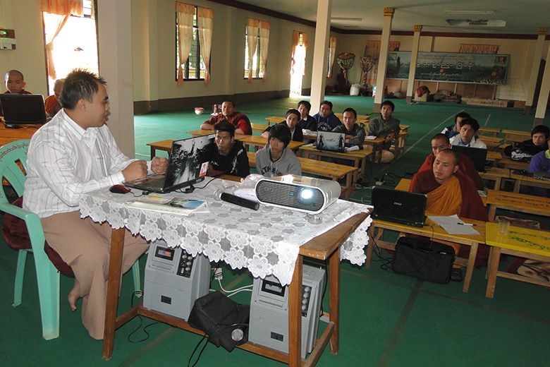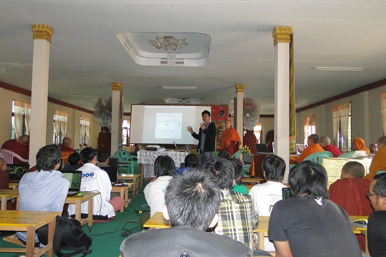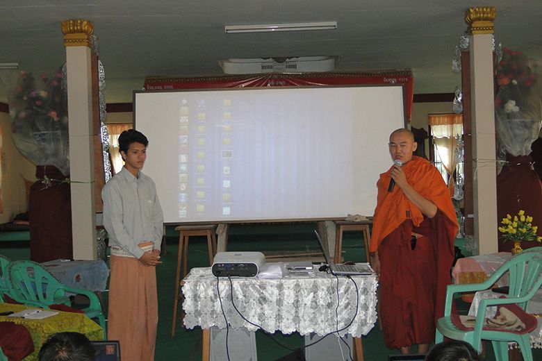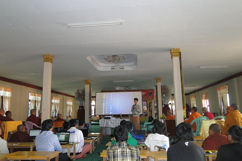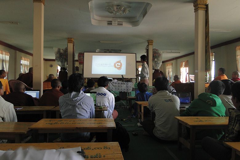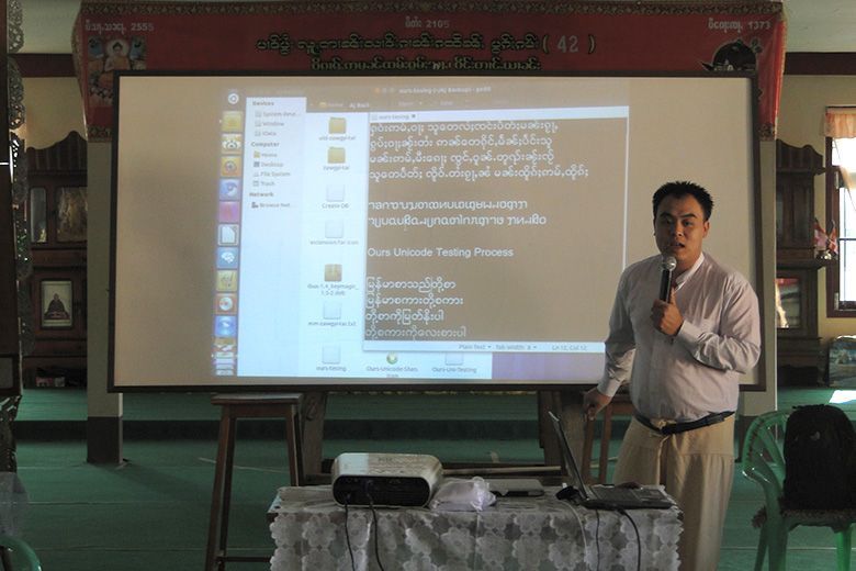 မိူဝ်ႈဝၼ်းထိ 2011၊ တီႇသႅမ်ႇပႃႇ 12 ဝၼ်းၼၼ်ႉ ၽူႈၼၢမ်းႁူဝ် ၸုမ်း SIIT ၸဝ်ႈသြႃႇသုၶမ်း ၊ ၸၢႆးမွၼ်းၶမ်း လႄႈ ၽူႈဢွၼ်ႁူဝ် Ubuntu Myanmar LoCo Team ဢၼ်ပဵၼ် Ko Ko Ye လႄႈ Ko Tho Hi ၶဝ် လႆႈႁူမ်ႈၵၼ် ႁဵတ်းပဵၼ် ပၢင်သိုပ်ႇမိုတ်ႈ Ubuntu OS လႄႈ ပၢင်သွၼ်ၶွမ်း တီႈ ၵျွင်းဢူမုၼ်ထမ်းႁူမ်ႈသႃႇ ၊ ဝဵင်းတၢင်ႉယၢၼ်းၼၼ်ႉယဝ်ႉ။ တီႈပၢင်သိုပ်ႇမိုတ်ႈၼၼ်ႉ ၸဝ်ႈသြႃႇသုၶမ်း လႆႈမွၵ်ႇလၢတ်ႈ ၶေႃႈၵႂၢမ်းဢေႃးဝႃႇတသေ ၸိူဝ်းပဵၼ် Ko Ko Ye, Ko Tho Hi လႄႈ ၸၢႆးမွၼ်းၶမ်းႁဝ်းၶဝ် သိုပ်ႇပိုၼ်ၽႄႈ တၢင်းႁူႉ ၵဵဝ်ႇလူၺ်ႈလွင်ႈ Ubuntu လႄႈ လွင်ႈၸႂ်ႉၶွမ်းၵႂႃႇယူႇ။ ဝၢႆးသေၼၼ်ႉ ၸဝ်ႈသင်ႇၶႃႇၶဝ်ၸဝ်ႈလႄႈ ၽူႈၸိူဝ်းၶိုၼ်ႈႁွတ်ႈမႃး ဢွၼ်ၵၼ်ထႆႇၶႅပ်းႁၢင်ႈမၢႆတွင်းၵိုၵ်းၵၼ်ယဝ်ႉ။